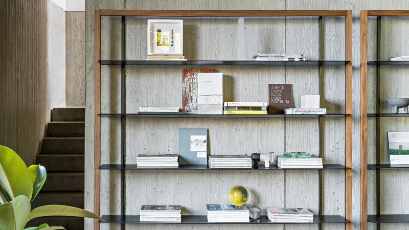 Sa svojim drvenim okvirom koji strši iz zidne metalne konstrukcije, Alix lagana polica za knjige oprema zid razbijajući njegovu monotoniju. Pažljiv odabir materijala je u središtu ovog projekta, koji se sastoji od jednostavnih i linearnih oblika: koncept je ojačan upotrebom aluminija, hladnog i žilavog materijala koji čini strukturu optički laganom, u kombinaciji s toplinom drva, prava zvijezda Alixina dizajna.