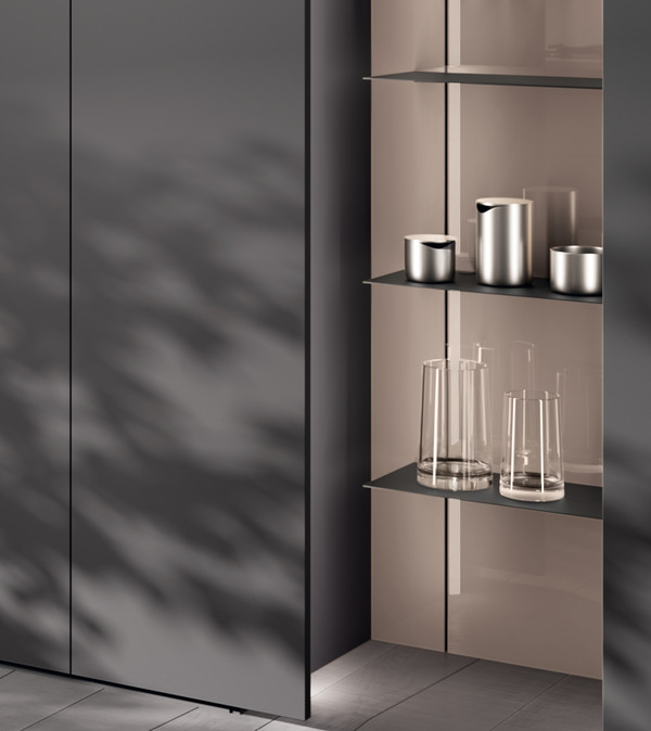 Jednostavne, ali upečatljive siluete, jasni i funkcionalni geometrijski oblici, karakteristike koje su pojačane prisutnošću okruglog udubljenog profila za prihvat, dostupnog i u više završnih obrada koje odgovaraju vratima.