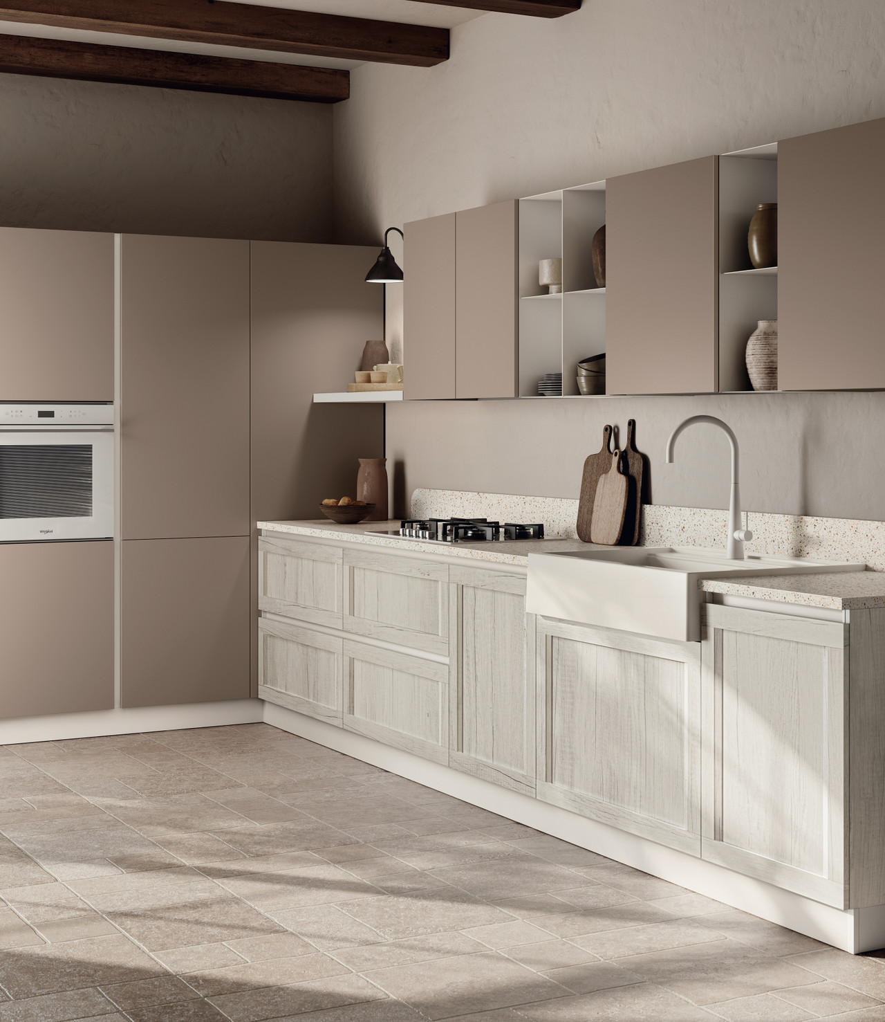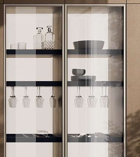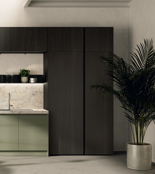 Ovaj sustav opremanja nudi jedinstveno i prilagodljivo kompozicijsko iskustvo zahvaljujući raznim materijalima, bojama i konfiguracijama – s otokom ili poluotokom, u obliku slova U, s velikim ili aerodinamičnijim volumenima – koje se savršeno integriraju u moderne i suvremene ambijente. Širok raspon izbora omogućuje svakom kupcu da prilagodi vlastiti ukus i stvori prostor koji u potpunosti odražava njegovu osobnost. Ključna značajka Regola linije su njezina obična vrata, dostupna u dvije debljine: 2,2 cm i 1,8 cm. Na kraju, ali ne i najmanje važno, za one koji traže prirodan i sofisticiran vizualni dojam, Regola se može naručiti i s vratima s okvirom debljine 1,9 cm, dostupnim u tri nijanse efekta drveta.